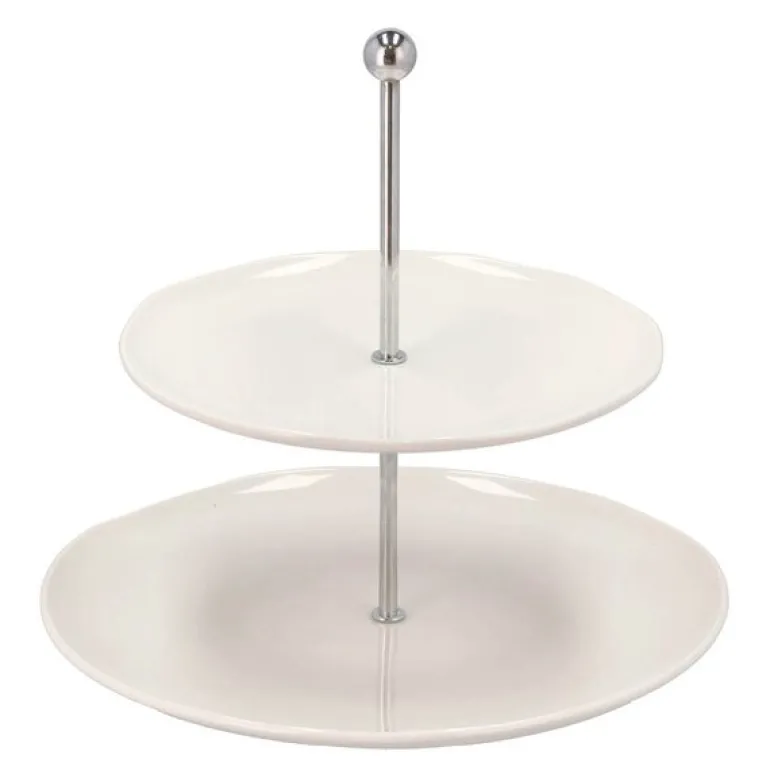 Med sin klassiske utforming og solide porselenskvalitet løfter det serveringen til et profesjonelt nivå, enten det er til hverdag eller fest. Den øverste etasjen har en diameter på 20 cm, mens den nederste måler 27 cm, noe som gir god plass til variert servering. Etasjefatet er både praktisk og dekorativt, og det passer perfekt til både små og store anledninger.