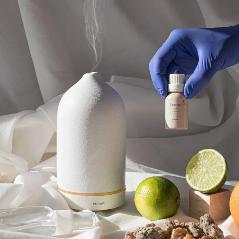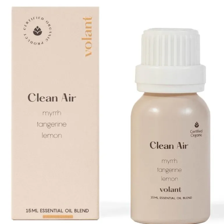 Volants økologiske oljeblanding, Clean Air, er frisk og søt. Blandingen av Myrra, Mandarin og en dash med Sitron er inspirert av et rent og friskt hjem, klart for gjester. Diffuse Clean Air for å forfriske hjemmet eller tilsett et par dråper i vaskerutinen din.