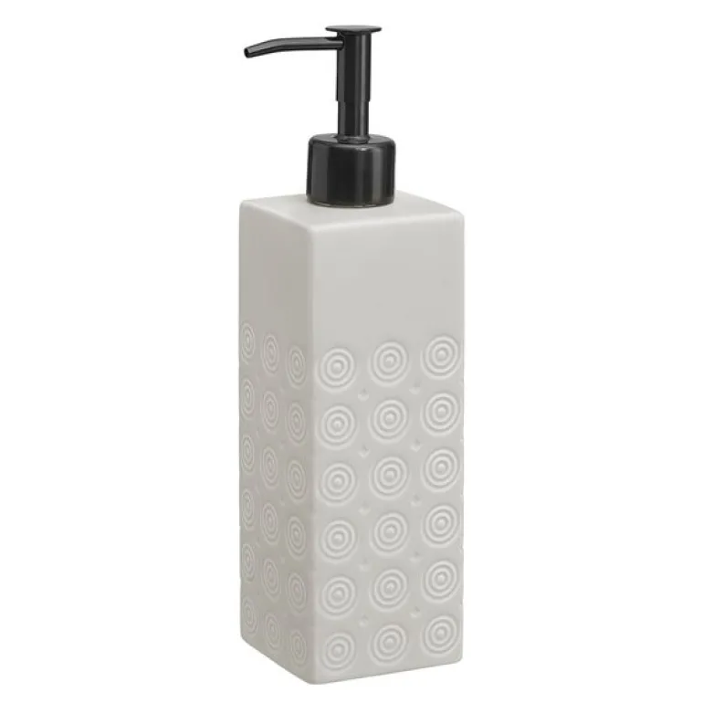 Denne keramiske såpepumpen i gotlandsgrå fra Cultdesigns Etno-serie er et ideelt tilbehør for deg som ønsker både funksjonalitet og stil. Med målene 6×18 cm passer den perfekt inn på både små og store flater, mens det vakkert utformede relieffmønsteret tilfører et eksklusivt preg.