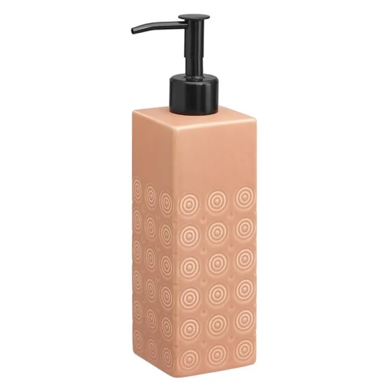 Denne keramiske såpepumpen i terra fra Cultdesigns Etno-serie er et ideelt tilbehør for deg som ønsker både funksjonalitet og stil. Med målene 6×18 cm passer den perfekt inn på både små og store flater, mens det vakkert utformede relieffmønsteret tilfører et eksklusivt preg.