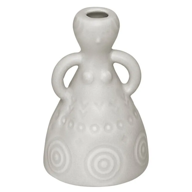 Denne gotlandsgrå minivasen fra Cultdesigns Etno-serie er et sjarmerende tilskudd til hjemmet. Den kompakte størrelsen på 6,5 cm gjør den ideell for små blomster eller som en dekorativ detalj på egen hånd.