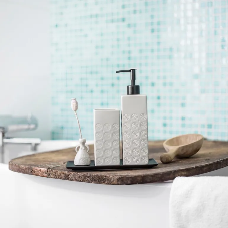 Med sitt vakre keramiske relieffmønster og tidløse design av Marita Lord, fungerer den også som en harmonisk match til såpepumpen i samme serie, og skaper et gjennomført uttrykk uansett hvor den plasseres.