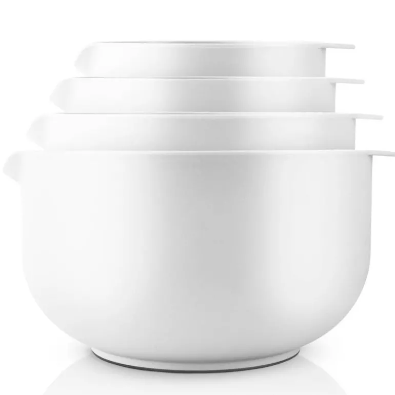 Bollen har i tillegg gummikant under bunnen slik at den står stabilt på bordet. Bruk Eva bakebolle til baking, som arbeidsbolle eller til vannbad – bollen tåler nemlig opptil 100 °C. Tåler dessuten fryser, mikrobølgeovn og oppvaskmaskin.