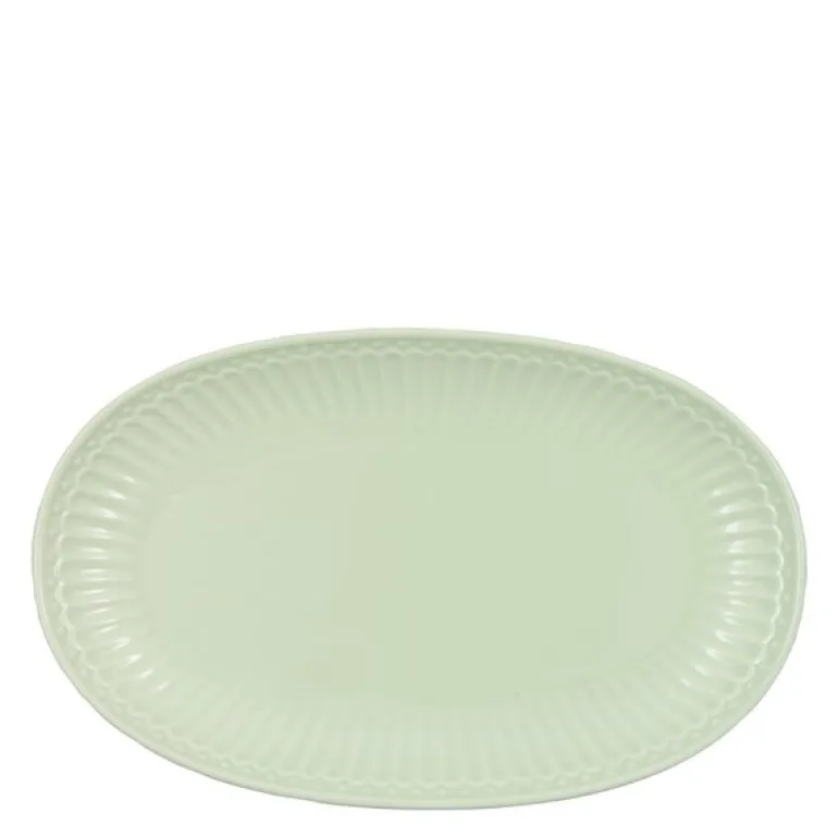 Everyday Alice pale green kjeksfat fra GreenGate, på 14,5×23 cm, er en elegant og funksjonell tallerken for deg som elsker å bake og servere med stil. Det stilrene designet fremhever bakverket og passer perfekt på både hverdags- og festbord. Fatet er enkelt i bruk, gir god støtte under servering og er lett å rengjøre. Ideelt for småkaker, muffins, frukt eller som et dekorativt ostefat.