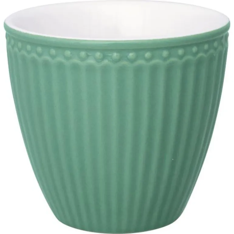 GreenGate Latte kopp Alice dusty green er preget med fine detaljer som gir en ekstra dimensjon. Lag ditt eget unike utseende ved å blande Hverdagsprodukter med våre klassiske design.