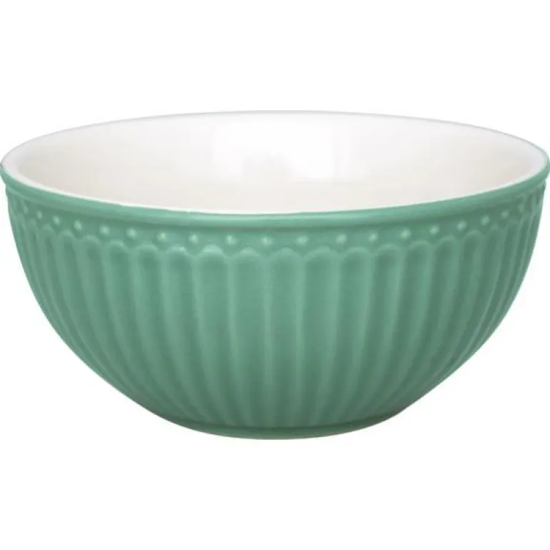 GreenGate Frokostblanding skål Alice Dusty Green er vakkert formet med fine detaljer som gir den et enkelt, søtt uttrykk. Lag ditt eget unike utseende ved å blande Hverdagsprodukter med våre klassiske design.