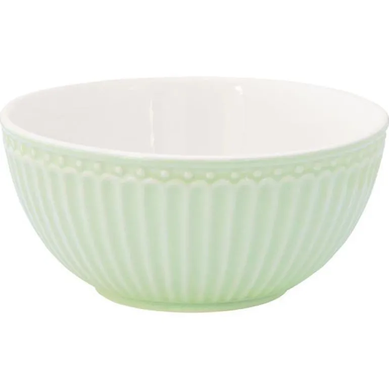 GreenGate Frokostblanding skål Alice Pale Green er vakkert formet med fine detaljer som gir den et enkelt, søtt uttrykk. Lag ditt eget unike utseende ved å blande Hverdagsprodukter med våre klassiske design.