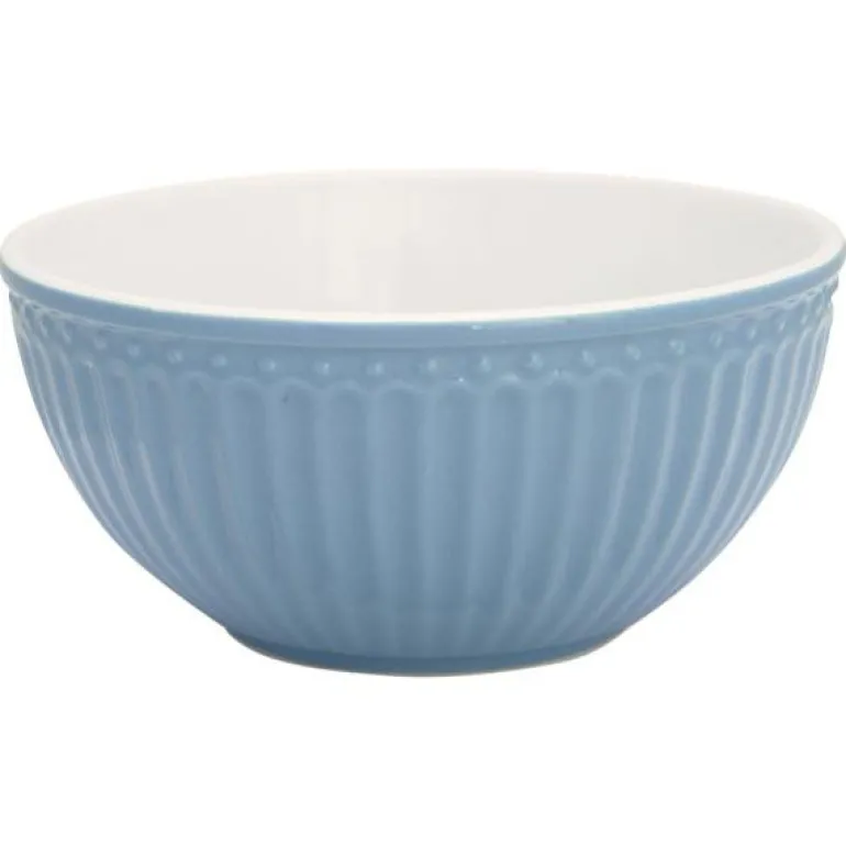 GreenGate Frokostblanding skål Alice Sky Blue er vakkert formet med fine detaljer som gir den et enkelt, søtt uttrykk. Lag ditt eget unike utseende ved å blande Hverdagsprodukter med våre klassiske design.