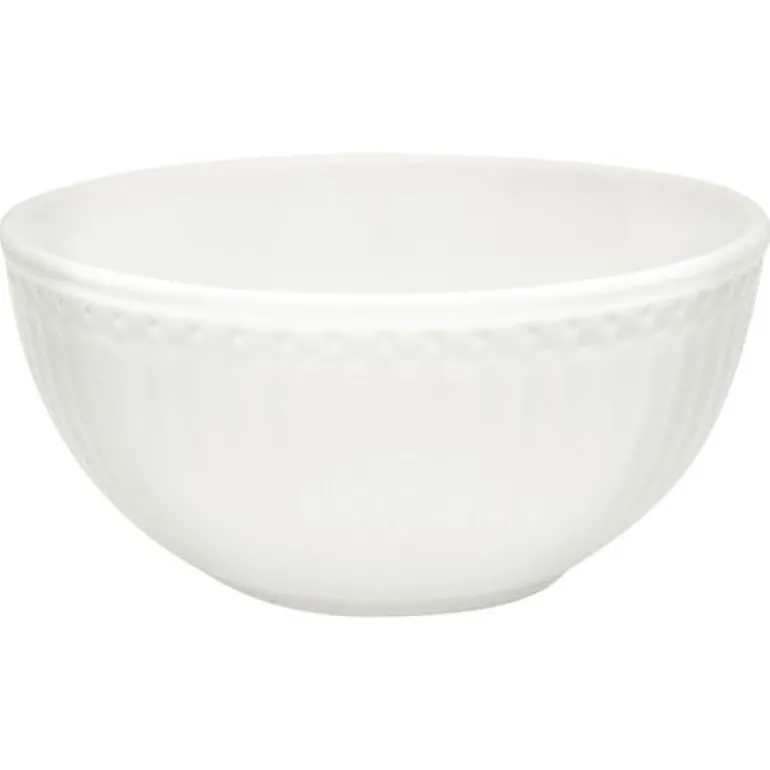 GreenGate Frokostblanding skål Alice White er vakkert formet med fine detaljer som gir den et enkelt, søtt uttrykk. Lag ditt eget unike utseende ved å blande Hverdagsprodukter med våre klassiske design.