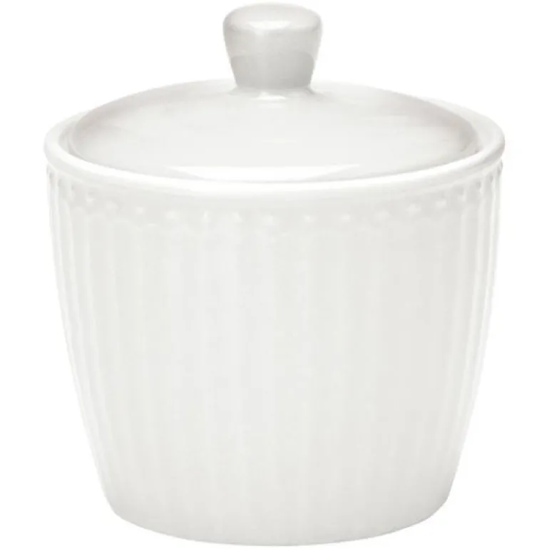 GreenGate Sukkerskål Alice white er preget med fine detaljer som gir en ekstra dimensjon. Lag ditt eget unike utseende ved å blande Hverdagsprodukter med våre klassiske design.