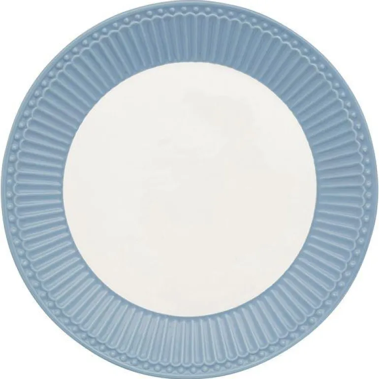 GreenGate Frokosttallerken Alice sky blue er vakkert formet med enkle og fine detaljer. Hvis du elsker farger og unike hverdagsprodukter, kan du enkelt blande og matche med andre produkter fra vår Everyday-serie.