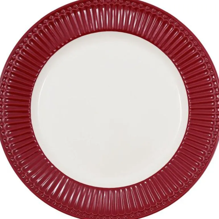 GreenGate middagstallerken Alice claret rød, er en stor tallerken laget av solid porselen. Alice imponerer med sin enkle form og elegante detaljer. Bland og match med Everyday i furugrønn for å fullføre utseendet.