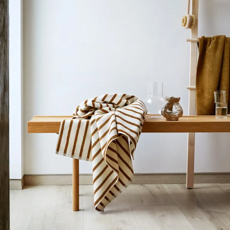 Everyday stripe håndkle 70×140 cm oker fra Høie. De populære Everyday-håndklærne er nå tilgjengelige i et nytt og friskt design. Disse myke og slitesterke håndklærne, laget av 100 % ekstra fin bomullsfrotté, er perfekte for daglig bruk. De er skånsomme mot huden og er et holdbart valg som du vil kunne glede deg over i lang tid. Everyday-håndklærne har utmerket absorpsjonsevne og tørker raskt, slik at både du og dine gjester kan nyte komforten de gir.