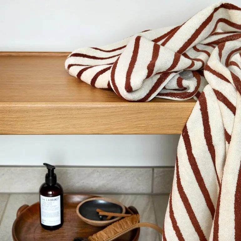 Everyday stripe håndkle 70×140 cm terracotta fra Høie. De populære Everyday-håndklærne er nå tilgjengelige i et nytt og friskt design. Disse myke og slitesterke håndklærne, laget av 100 % ekstra fin bomullsfrotté, er perfekte for daglig bruk. De er skånsomme mot huden og er et holdbart valg som du vil kunne glede deg over i lang tid. Everyday-håndklærne har utmerket absorpsjonsevne og tørker raskt, slik at både du og dine gjester kan nyte komforten de gir.