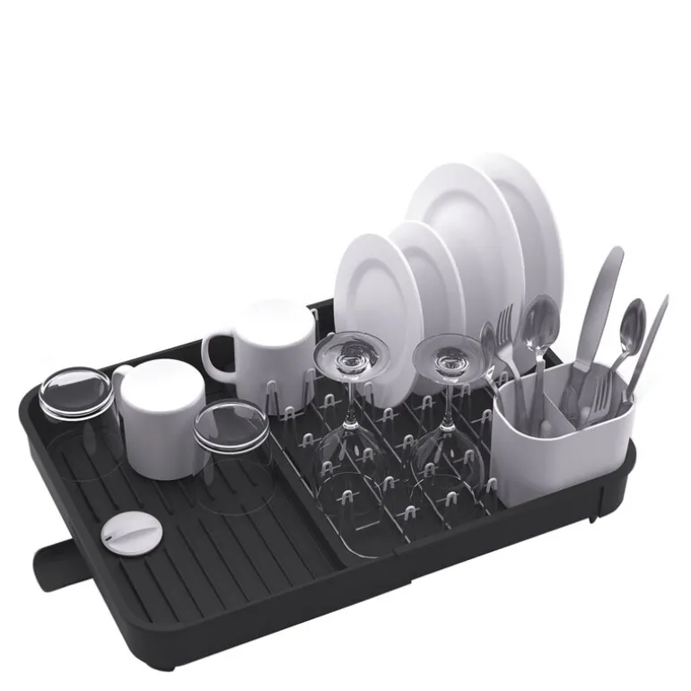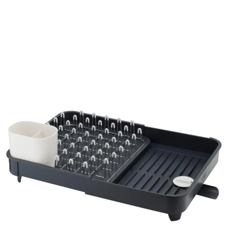 Extend oppvaskstativ grå er et praktisk og plassbesparende oppvaskstativ designet med fokus på kvalitet og verdi. Dette oppvaskstativet gjør hverdagen på kjøkkenet enklere ved å stå stabilt på benken og kunne trekkes ut til ca dobbel størrelse ved behov. Vann dreneres bort og renner ut i vasken eller ønsket sted.