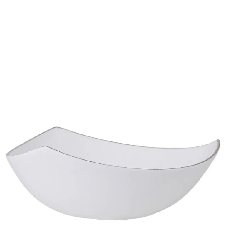 Dyp tallerken i serviset Extreme Platinum fra Royal Porcelain. Extreme Platinum er et moderne festservise for den som våger litt mer. Serien har et stramt, rent design med spennende former, alt kantet med sølv. Hvem sa at tallerkenen må være rund? De hvite tallerkenene kan fint kombineres med delene som heter Extreme Platinum Paris. Disse er dekorert med et lyst, delikat barokkmønster. Eller hva med å blande produkter fra Royal Porcelains Platinum-serie med Extreme Platinum?Serien er produsert av Royal Porcelain, en av Norges største merkevarer innen serviser. Extreme Platinum er laget av benporselen, som er den aller fineste type porselen. Serien er egnet for oppvaskmaskin. Extreme Platinum får du kun hos Tilbords. Extreme Platinum er et komplett festservise, som inneholder alt du trenger til den fine anledningen. Det enkle, tidløse designet gjør at serviset er like aktuell til alle årstider og kan kombineres med bordpynt i dine favorittfarger. Serien inneholder tallerkener i ulike størrelser – til forrett, hovedrett og dessert – serveringsfat i flere størrelser, suppeterrin, sausenebb og salatbolle. I tillegg finner du selvsagt et komplett kaffeservise.