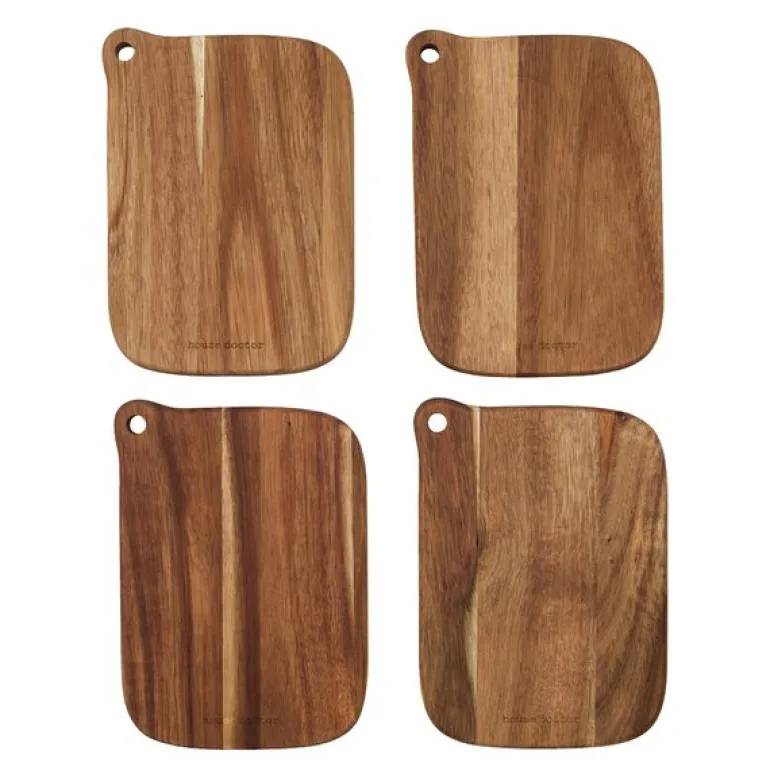 Eya skjærebrett fra House Doctor er et sett med fire små skjærebrett i vakkert akasietre, som kombinerer funksjonalitet med et naturlig, rustikt uttrykk. Hvert brett har unike fargevariasjoner, noe som gir dem et sjarmerende og individuelt preg. Perfekte for tilberedning av små porsjoner eller servering av småretter, gjør disse kompakte brettene det enkelt å håndtere daglige kjøkkenoppgaver.