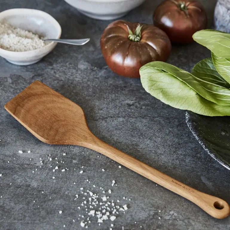 Eya spatula 30 cm fra House Doctor er laget i vakkert akasietre og har en elegant og naturlig finish som gir varme til kjøkkenet. Den tynne, flate forkanten gjør det lett å komme under maten, perfekt for alt fra sprøstekte speilegg til saftige biffer.