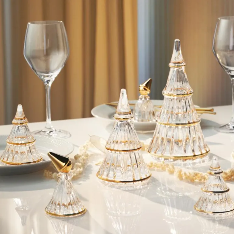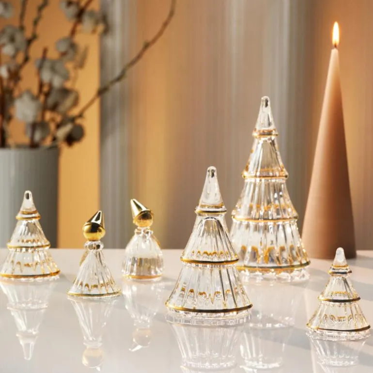 La Holmegaard stå for årets juleutsmykning på det store middagsbordet med Fairytales-serien. Her får du pene juletrær i glass, som er utsmykket med håndmalte gulldetaljer. Dette juletreet er ett av de fire forskjellige i Fairytales-serien, og dette måler 9,5 cm i høyden. Det gir deg en rekke muligheter når det kommer til å finne den helt riktige kombinasjonen til julebordet. Den klassiske og enkle designen gir deg rike muligheter til å kikke rundt i Holmegaards andre juleserier, siden disse juletrærne komplementerer dem alle. Du kan også sette sammen din egen serie fra Fairytales ved å kombinere flere ulike størrelser fra serien.