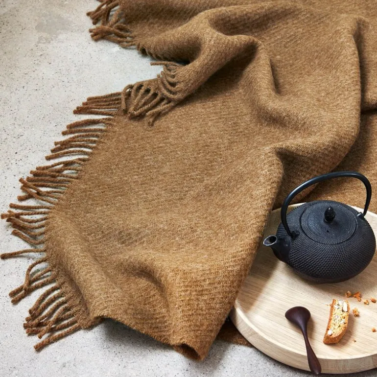 Falketind ullpledd 120 x 180 cm i fargen varm oker fra Høie, er et mykt og varmt pledd i 100 % ren ull, perfekt for kjølige dager og avslappende stunder. Ullens naturlige pusteevne sørger for behagelig varme uten å skape fuktighet, samtidig som materialet isolerer godt.