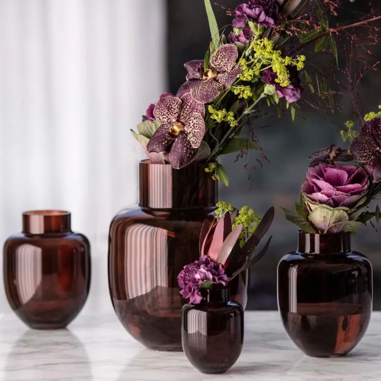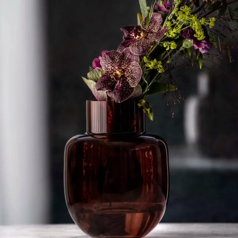 Family vase 26 x 18,5 cm brun fra Magnor. FAMILY er en sjarmerende og elegant vase med myke og moderne former. I tillegg til klar kommer den nå som nyhet i en varm sjokoladebrun farge i tre lekre størrelser, formgitt av blomsterdekoratøren og tv-profilen Finn Schjøll. Med inspirasjon hentet fra hans vidunderlige blomsterverden, har han skapt en stram og tiltalende vase som vil være et naturlig midtpunkt i hjemmet for hele familien.