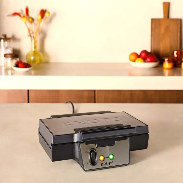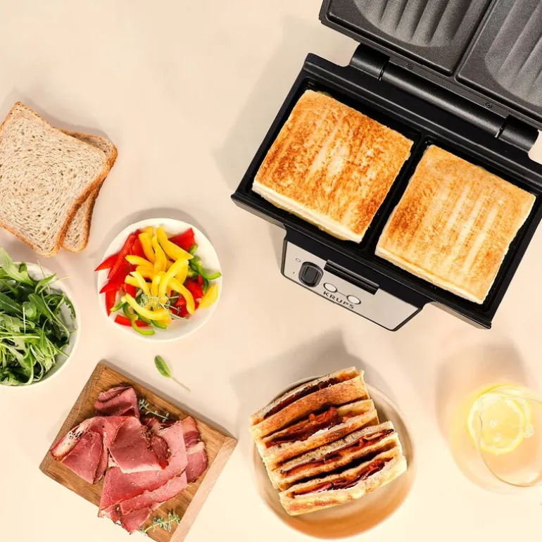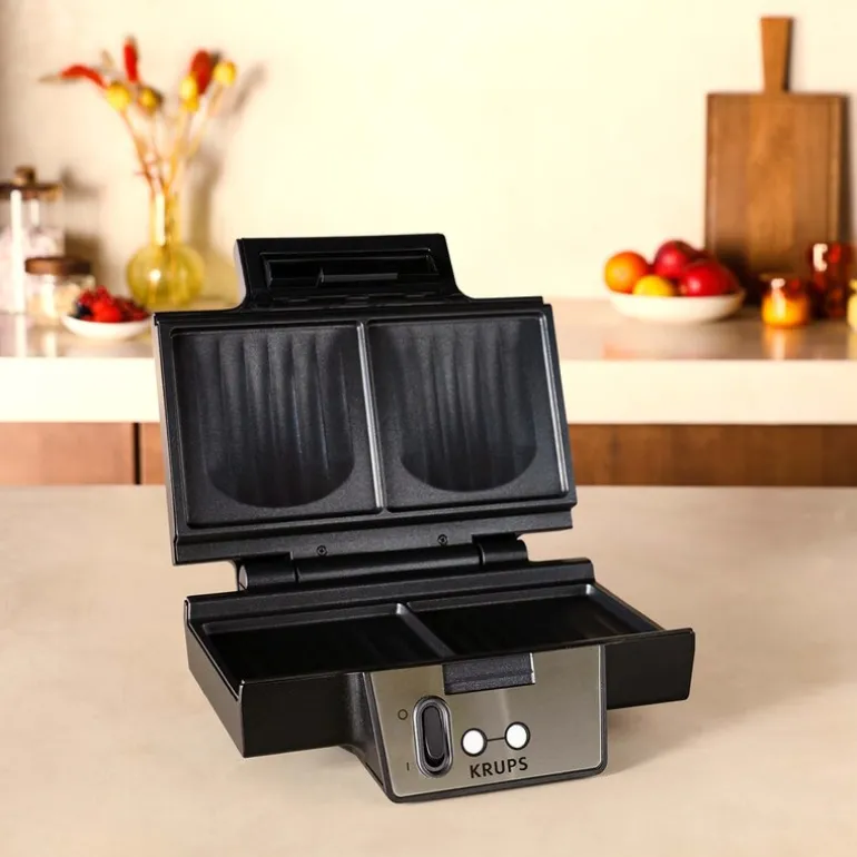 Med Krups FDK Iconic toastjern på 850 W kan du enkelt lage perfekt sprø toast hjemme. De store og dype platene passer brødskiver på opptil 120 x 120 mm, slik at du kan lage fyldige og smakfulle toast uten problemer.
