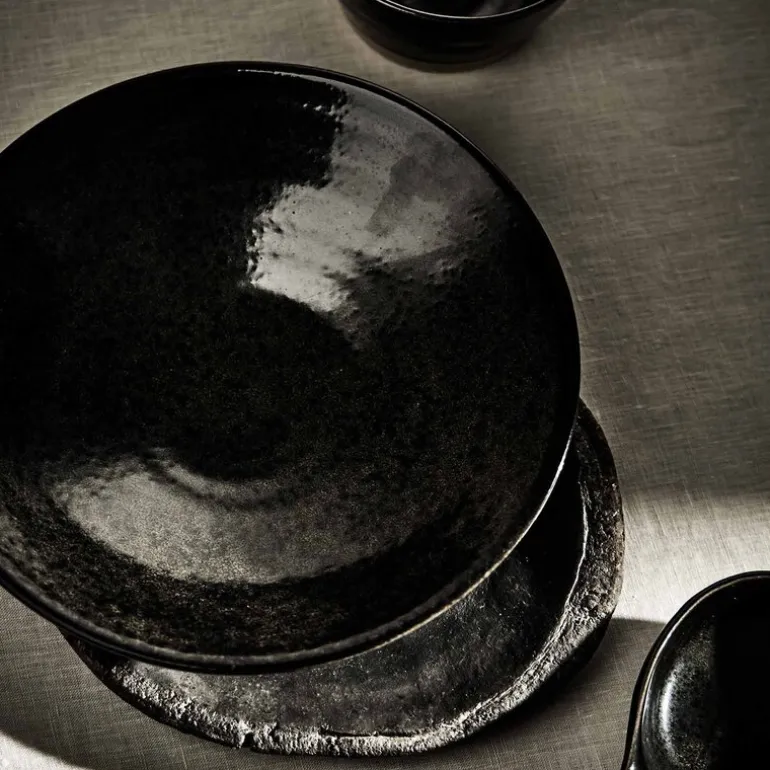 Tallerkenens uglasert underside skaper en vakker kontrast mot den dype, mørke glasuren, som tilfører et unikt uttrykk til hver enkelt tallerken. Etter brenningen utvikler glasuren seg individuelt, noe som gir subtile forskjeller i farge og tekstur, og gjør hvert produkt helt unikt. Disse små variasjonene gir borddekkingen et levende og innbydende uttrykk. Kombiner gjerne med en linserviett i samme fargeskala for å skape en harmonisk og koselig atmosfære. Fenix pastatallerken fungerer like godt alene som den gjør når den kombineres med andre porselens- og steintøyserier for en komplett og stilren bordsetting.