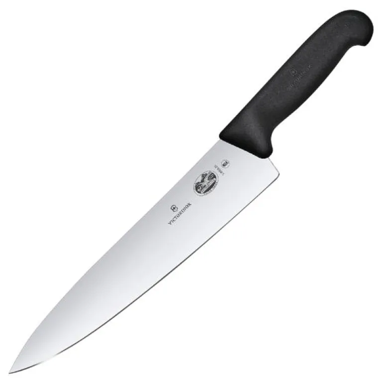 Victorinox kokkekniv 25 cm i rustfritt stål med sort plastskaft. Knivbladet er tynt og skarpt og gjør at du kan skjære alt av grønnsaker, frukt og kjøtt i jevne stykker og så tynne skiver som du ønsker. Skaftet er ergonomisk formet for å gi best mulig grep og har matt overflate for å hindre at hånden glir. Victorinox er et gammelt kvalitetsmerke på kniver fra Sveits.Det begynte med de verdensberømte Swiss Army Knives og produserte etterhvert kniver både til profesjonellt bruk og til hobby kokker.Victorinox har fokus på kvalitet, innovasjon og tradisjon.I de senere år også produserer de i tillegg andre produkter som klokker, reiseartikler og dufter.