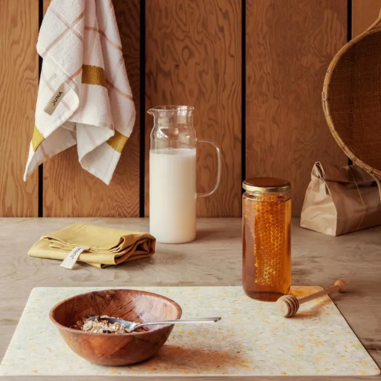 Den feminine, gule Field-dekkebrikken fra JUNA er en vakker og moderne dekkebrikke produsert i 50 % bomull og 50 % polyester med et beskyttende akrylbelegg. Ved behov for rengjøring er dekkebrikken enkel og rask å tørke av med en fuktig klut, slik at den er klar til bruk igjen. Field-dekkebrikken måler 43 x 30 cm og baksiden er kledt med skum som sikrer at den ligger stabilt på underlaget. Field-dekkebrikken er både praktisk og dekorativ og fås også i andre farger enn gul, så du kan finne akkurat den dekkebrikken som passer til stilen din.