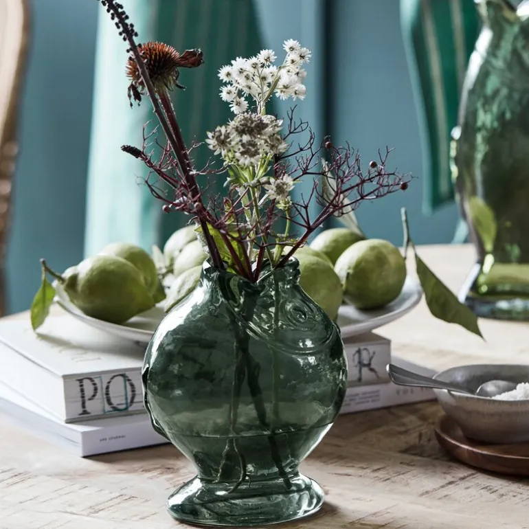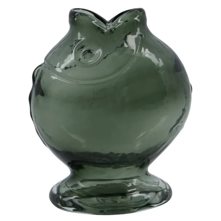 Fish vase 17,5 cm fra House Doctor bringer en elegant balanse mellom humor og design. Laget i røykgrått munnblåst glass og formet som en stilisert fisk, fremstår den som både dekorativ og kunstnerisk.