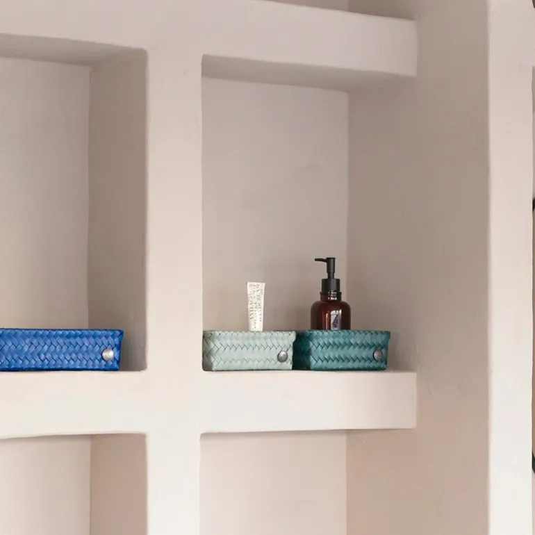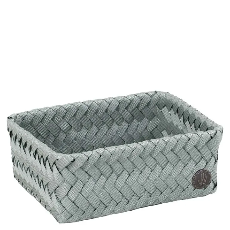 Fit oppbevaringskurv i størrelsen 18x12x7 cm fra Handed By er en funksjonell og dekorativ løsning for organisering i hjemmet. Den lekre fargen eucalyptus og det elegante flettemønsteret gir kurven et stilrent uttrykk som passer i de fleste rom. Kurven er håndflettet av resirkulert plast og kan stables i skap, skuffer eller hyller.