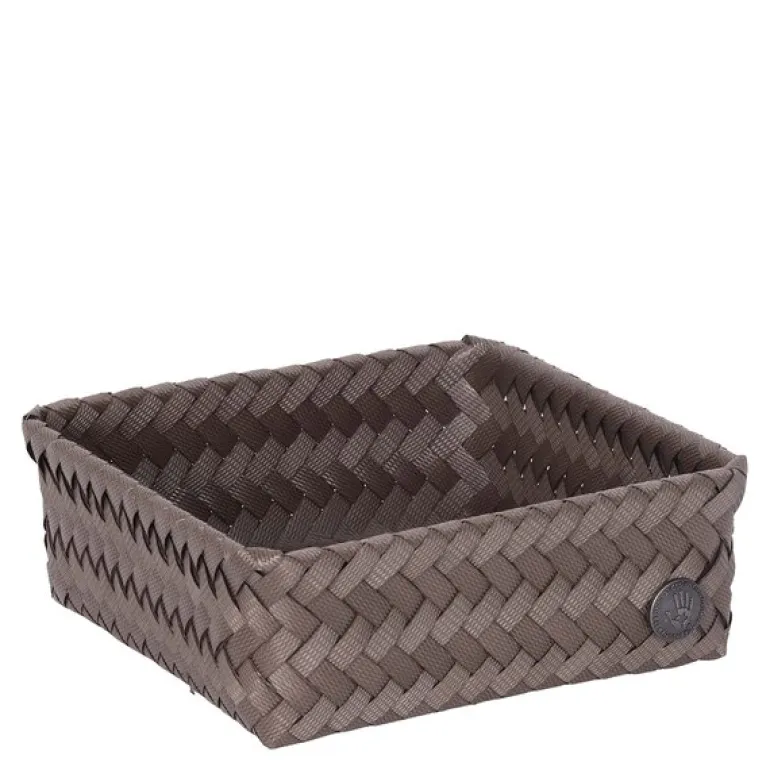 Fit Square oppbevaringskurv 18x18x7 cm i taupe fra Handed By er en kompakt og praktisk kurv som gjør det enkelt å holde orden i små rom. Den er en del av FIT-serien – kurver som kan stables og tilpasses både skuffer, skap og hyller.