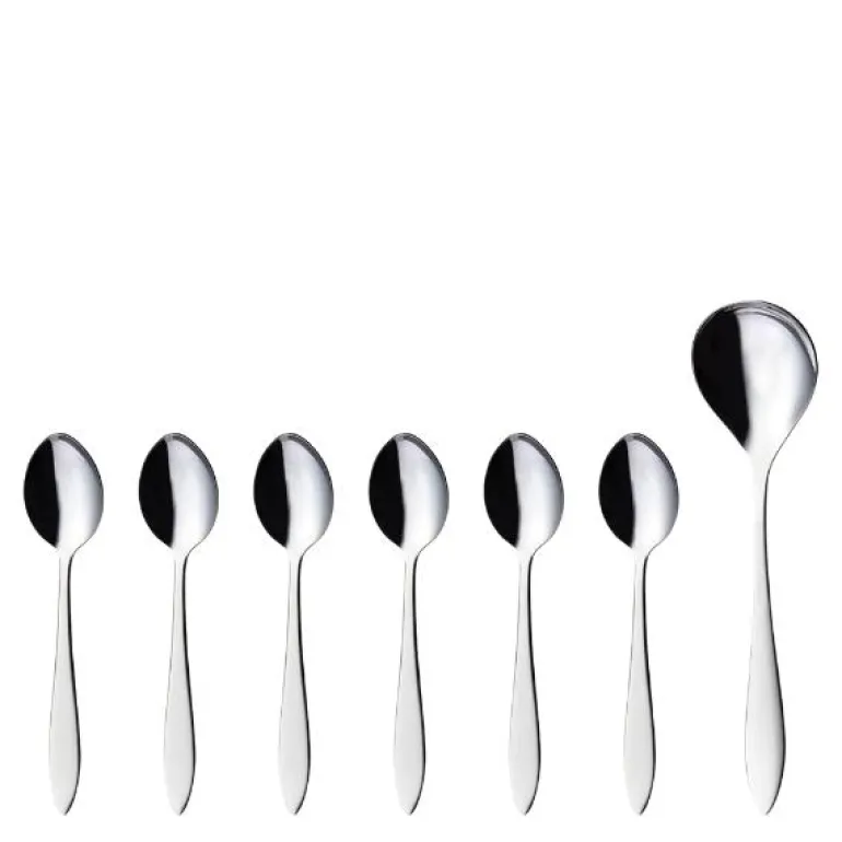Dessertsett fra den myke og minimalistiske Fjord-serien fra Hardanger Bestikk. Bestikket har rene, elegante linjer som er typisk for den skandinaviske minimalismen. Serveringsskjeen har gripevennlig håndtak og god dybde for sømløs servering. Dessertskjeene er større, lengre og dypere enn vanlig teskje. Stålet som er av 18/10 rustfritt stål tåler oppvaskmaskin, og produktet har livstidsgaranti. Dessertsettet leveres i gaveeske og inneholder;
