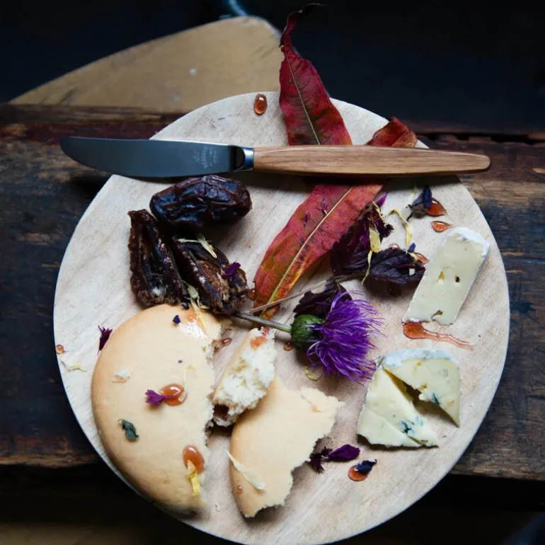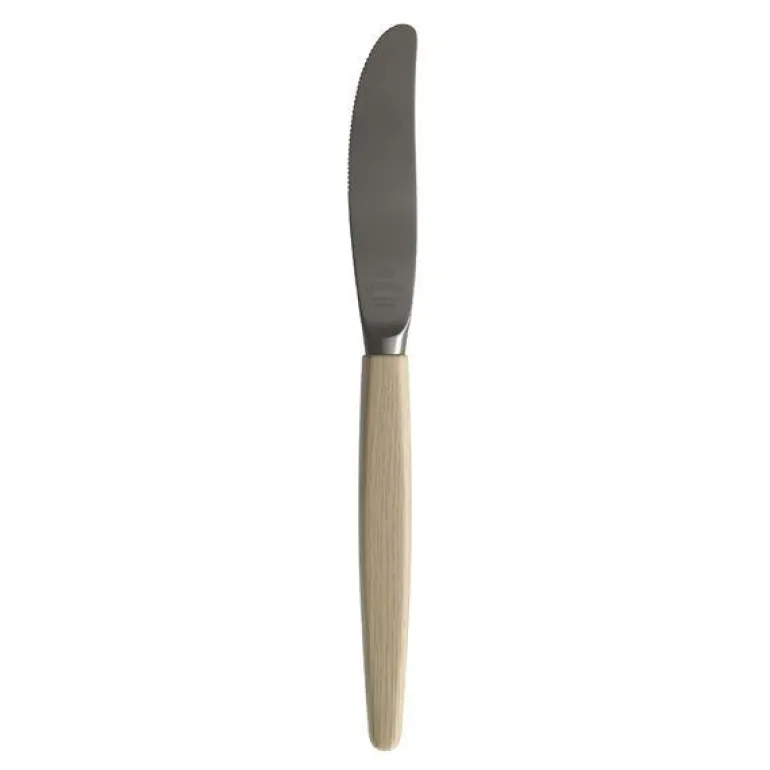 Fjord kniv 21 cm. Naturen er alltid til stede i vårt design. Når Restaurant Under ba Skaugum om å lage deres bestikk ble Skaugum inspirert av overgangen mellom sjø og land. Drivveden som slipes til kunstverk av tidevann på et nakent svaberg. Resultatet ble FJORD. Norsk Eik, tromlet av naturen, kombinert med mørkt stål som speiler havets farge en høstdag. Vakrere blir det ikke. Settet blir levert i en pen gaveeske. Skaugum Bestikks kronelogo er deres garanti for at du holder et håndlaget, norsk kvalitetsbestikk. Bordknivene er smidde, som gir en skarphet og kvalitet som ingen andre produksjonsmetoder klarer. Bestikket er produsert i rustfritt mørkt stål med 18/8-kvalitet, skaftet er tilvirket av tromlet norsk eik og har en røff overflate. Skaugum Bestikk i Fjord må vaskes for hånd. Skaugum sine bestikk har sett like ut helt siden starten i 1943. Skaugum lager sine bestikk for hånd, som er en spennende og tidkrevende prosess. Stålet varmes opp til 1035 grader før vi slår med en hydraulisk hammer ned i ønsket form. Våre plastskaft blir støpt mens treskaftene sages og freses. Vi skjefter, polerer, og borer hver del for hånd på maskiner fra en annen tidsalder.
