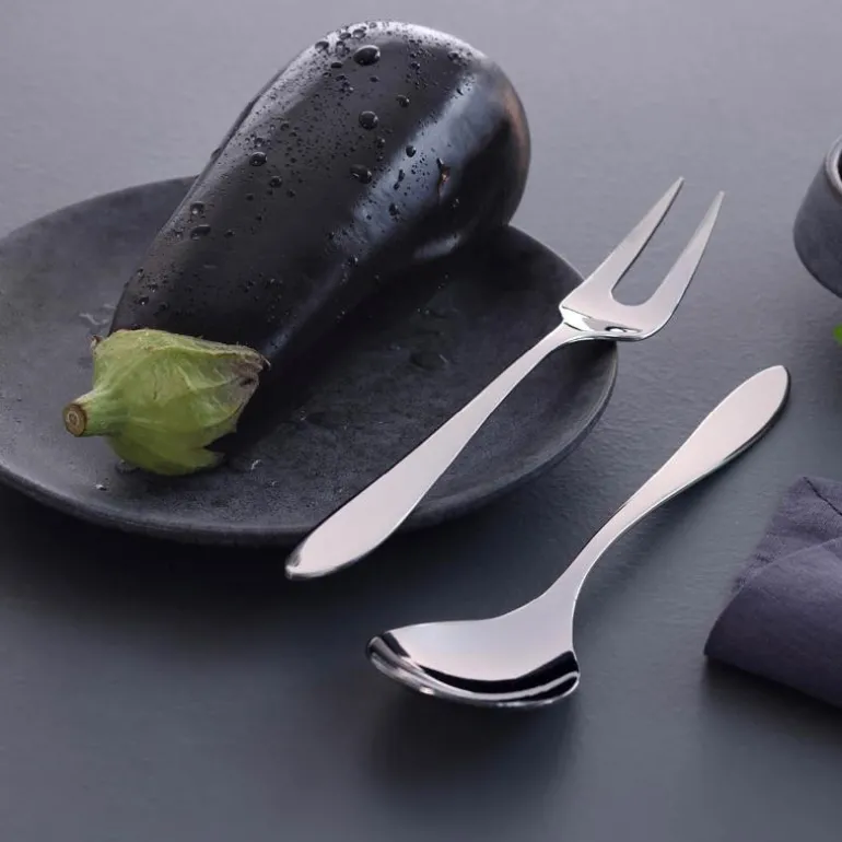 Serveringssett 2 deler fra den myke og minimalistiske Fjord-serien fra Hardanger Bestikk. Bestikket har rene, elegante linjer som er typisk for den skandinaviske minimalismen. Serveringsskjeen og serveringsgaffelen har gripevennlig håndtak, god dybde og komplementerer hverandre for sømløs servering. Stålet som er av 18/10 rustfritt stål tåler oppvaskmaskin, og produktet har livstidsgaranti. Serveringsettet leveres i gaveeske og inneholder;