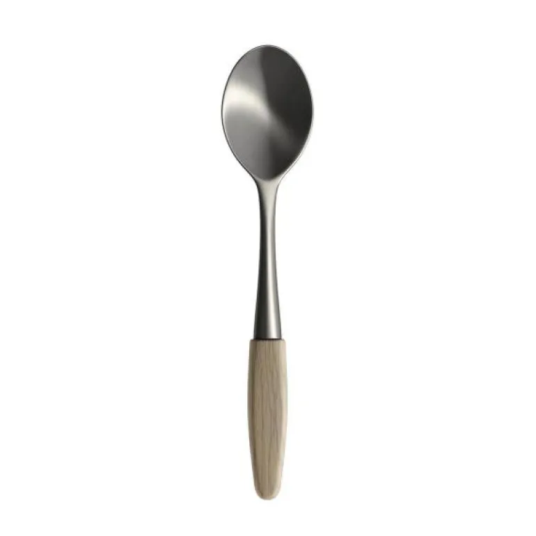 Fjord teskje 14 cm. Naturen er alltid til stede i vårt design. Når Restaurant Under ba Skaugum om å lage deres bestikk ble Skaugum inspirert av overgangen mellom sjø og land. Drivveden som slipes til kunstverk av tidevann på et nakent svaberg. Resultatet ble FJORD. Norsk Eik, tromlet av naturen, kombinert med mørkt stål som speiler havets farge en høstdag. Vakrere blir det ikke. Settet blir levert i en pen gaveeske. Skaugum Bestikks kronelogo er deres garanti for at du holder et håndlaget, norsk kvalitetsbestikk. Bordknivene er smidde, som gir en skarphet og kvalitet som ingen andre produksjonsmetoder klarer. I tillegg til kniv, skje og gaffel har vi et bredt utvalg av andre deler, som for eksempel kakespade, salatbestikk og ostehøvel. Bestikket er produsert i rustfritt mørkt stål med 18/8-kvalitet, skaftet er tilvirket av tromlet norsk eik og har en røff overflate. Skaugum Bestikk i Fjord må vaskes for hånd. Skaugum sine bestikk har sett like ut helt siden starten i 1943. Skaugum lager sine bestikk for hånd, som er en spennende og tidkrevende prosess. Stålet varmes opp til 1035 grader før vi slår med en hydraulisk hammer ned i ønsket form. Våre plastskaft blir støpt mens treskaftene sages og freses. Vi skjefter, polerer, og borer hver del for hånd på maskiner fra en annen tidsalder.