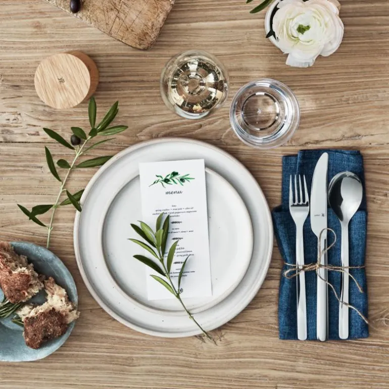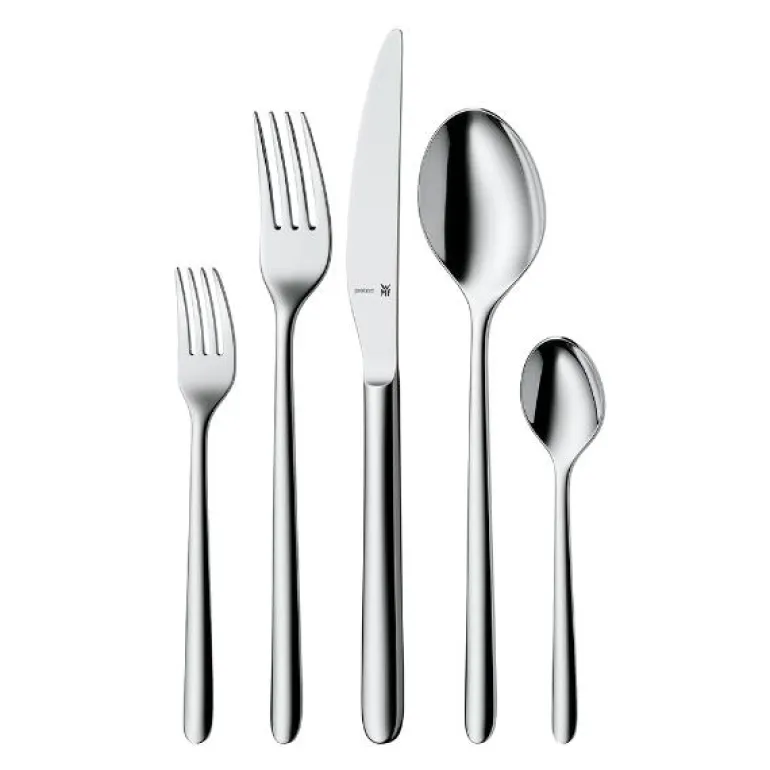 Det elegante og velformede bestikket fra WMF er en hyllest til enkelheten – med ukompliserte, men omhyggelig definerte proporsjoner som er behagelige å se på og røre ved, og som ligger godt i hånda. Materialer i høy kvalitet og bruken av Cromargan protect® gjør at bestikket tåler oppvaskmaskin og er motstandsdyktig overfor riper og brukstegn, så ingenting kan komme i veien for avslappet hygge med et snev av herregårdsstil. Knivene har et innlagt blad laget av smidd og herdet spesialbladstål. Det sagtakkete bladet sikrer en perfekt skarphet som holder lenge. Ekstremt motstandsdyktig mot riper: Sølvtøy holder seg som nytt i mange år og viser ingen bruksspor selv om det brukes intensivt hver dag. WMF Cromargan protect® sølvtøy gjennomgår en patentert prosess som er eksklusiv for WMF for å styrke motstandsdyktigheten mot bruksspor. Alle delene er i toppkvalitet og er omhyggelig fremstilt, og de kan lett rengjøres i oppvaskmaskinen. USP1 Cromargan rustfritt stål 18/10 – lett å rengjøre, smaksnøytralt og syreresistent. USP2 Tåler oppvaskmaskin USP3 0 USP4 0 USP5 0