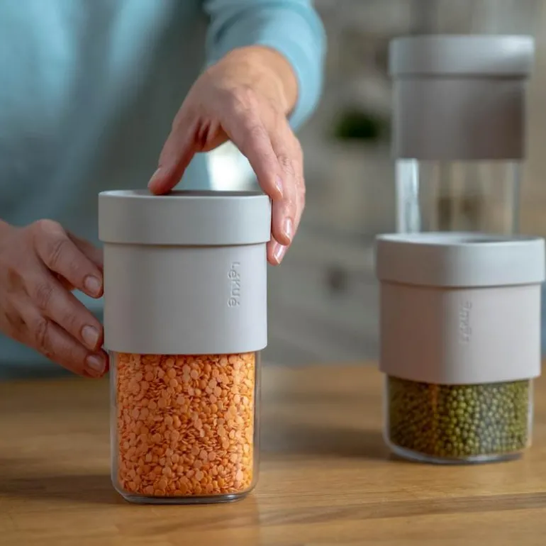 Disse oppbevaringsbeholderne for mat er det perfekte lagringssystemet. Endre volumet fra 600 ml til 850 ml for å tilpasse deg forskjellige rom, ingredienser og matlagingsscenarier. Flip-tilbehøret gir deg en ekstra kapasitet på 250 ml når du trenger det.