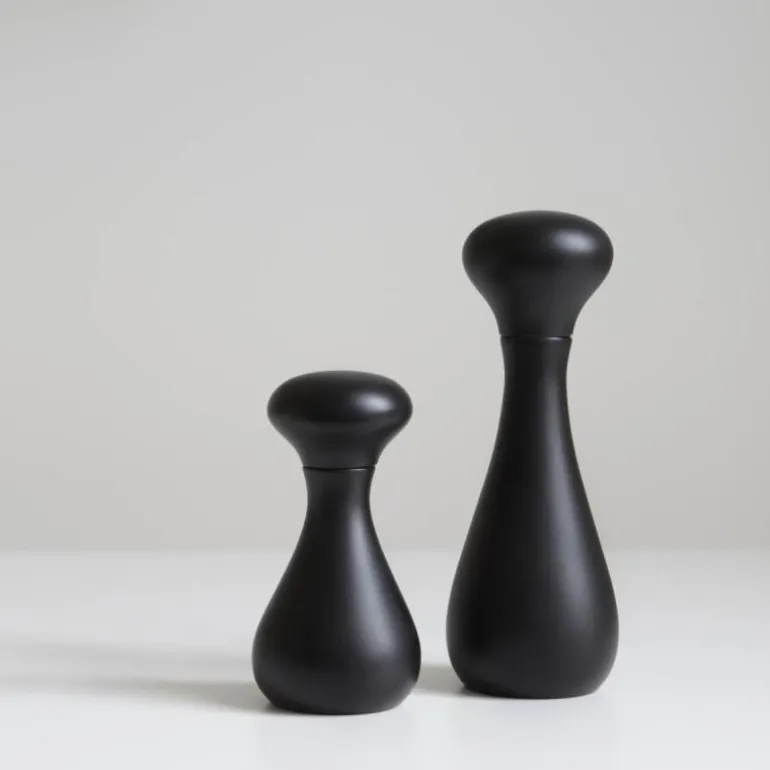 Krydderkvern, Flo 24 cm svart, fra Wireworks. Fraværet av en skjemmende festeknapp og den slanke elegansen til dette designet gjør Flo til den perfekte passformen for hånden din. Denne vinnende kombinasjonen av form og funksjon huser den velprøvde danske «Crush Grind», justerbar, keramisk slipemekanisme. Ved å bruke en enkelt blokk ulaminert, beiset svart bøk beholdes kornets integritet og forbedrer kvernens utseende.