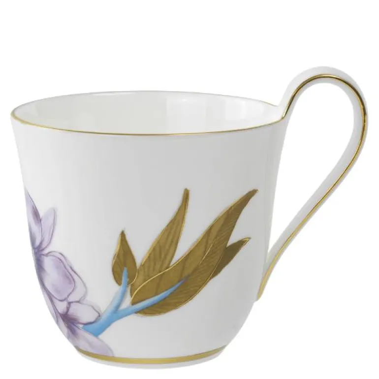 Flora bærer vakkert arven fra Flora Danicas historiske blomstermotiver med seg inn i fremtiden. Hver servisedel er prydet med en vakker blomst; like frisk som en nyplukket blomst fra Danmarks hager. Designet i 2012 av Anja Kragh Vang. Rododendronens skinnende blader og ekstravagante blomster er gjengitt i myke, lilla nyanser på Flora høyhankskoppen, noe som gjør koppen både iøynefallende og elegant. Høyhankskoppen på 33 cl kan med fordel kombineres med andre servisedeler fra Flora for å skape en personlig blomsterflora. Kan vaskes i oppvaskmaskin.