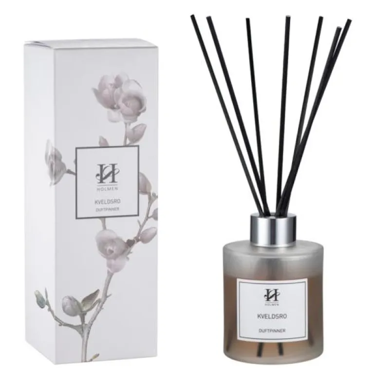 Få en god duft i rommet med Florentina duftpinner fra Holmen. Duftpinnene, kveldsro, sprer en god og balansert duft som passer hele året. Duftpinnene kommer i et dekorativ glass, med et stilrent og moderne design.