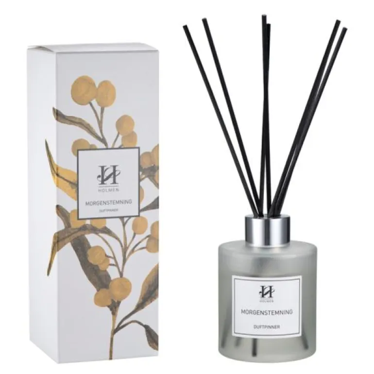Få en god duft i rommet med Florentina duftpinner fra Holmen. Duftpinnene, morgenstemning, sprer en rund og god duft med et snev av vanilje, som passer hele året. Duftpinnene kommer i et dekorativ glass, med et stilrent og moderne design.