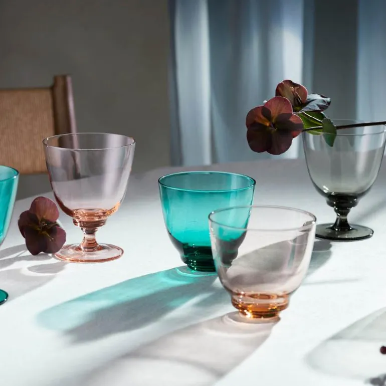 Alle glassene i Flow-serien er munnblåst, slik at hvert glass er helt unikt. Røykfargen er en elegant, klassisk glassfarge som passer til enhver borddekking og balanserer de mer fargerike glassene.