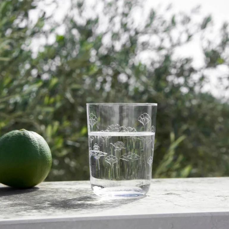 Water XL er et stort vannglass i en klassisk sylinderform med plass til rikelig med is til enten vann, brus eller mineralvann. Glassets form og størrelse gjør det også ideelt til en øl. Med den vakre blomsterdekorasjonen, inspirert av nordiske nyperoser og stiliserte art deco-blomster, er det også fristende å bruke det store glasset som oppbevaring på skrivebordet eller sminkebordet. Glasset kan stables i kjøkkenskapet.