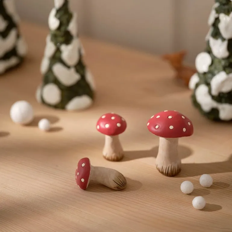 I denne versjonen trenger du ikke bekymre deg. Disse soppene er laget som dekor og er helt ufarlige – perfekte til å skape stemning i jule- og høstdekorasjoner med et dryss av naturmagi.