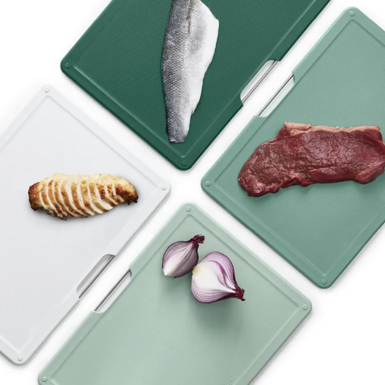 Fargekodingen gjør det enkelt å tildele hvert brett til en bestemt type råvare, slik som rå fisk, rått kjøtt, grønnsaker og ferdiglaget mat, og dermed opprettholde en god hygiene under matlagingen. Etter bruk kan brettene enkelt vaskes i oppvaskmaskinen eller for hånd, og plasseres tilbake i beholderen, takket være luftspalten mellom brettene som hjelper dem å tørke hvis de fortsatt er litt fuktige etter oppvasken.