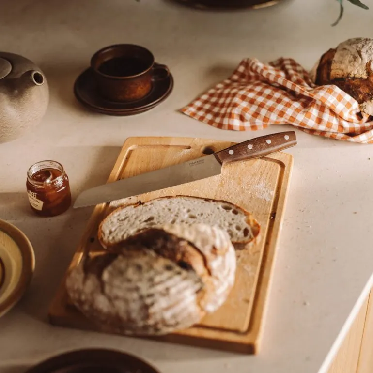 Det ergonomiske håndtaket i varmebehandlet, FSC-sertifisert lønnetre ligger godt i hånden og gir både komfort og kontroll. Brødkniven skal vaskes for hånd og må ikke ligge i vann – perfekt for deg som setter pris på godt håndverk og lang levetid.