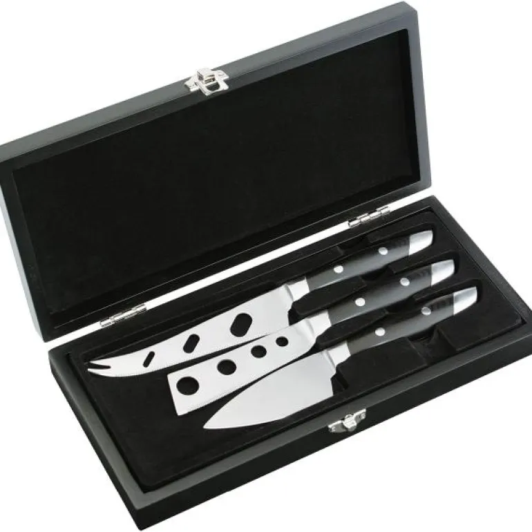 FONTINA osteknivsettet inneholder 3 ostekniver, som hjelper deg med å takle alle ostene du kan støte på. Settet er laget av rustfritt stål og kommer i en gaveeske av tre.