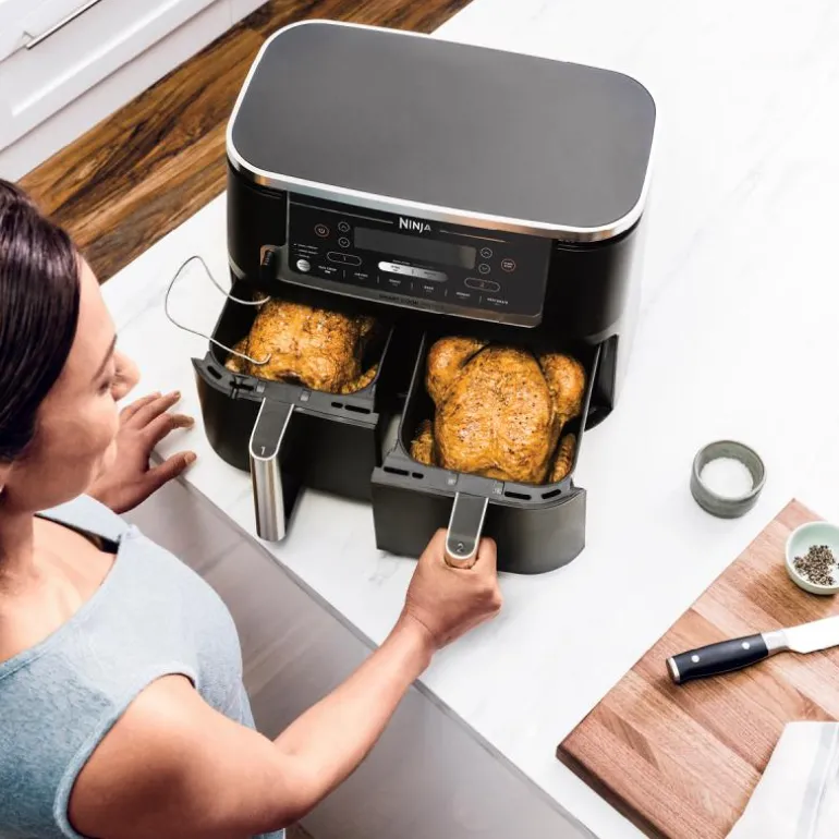 Foodi max dual zone airfryer 9,5L 2470W, fra Ninja. Få måltidene til å nå nye høyder med AF451EU airfryeren, som kombinerer stor kapasitet med avansert funksjonalitet. Denne oppgraderte modellen er utstyrt med Smart Cook System, som gjør matlagingen til en lek – bare sett inn termometeret, så steker den til perfeksjon.