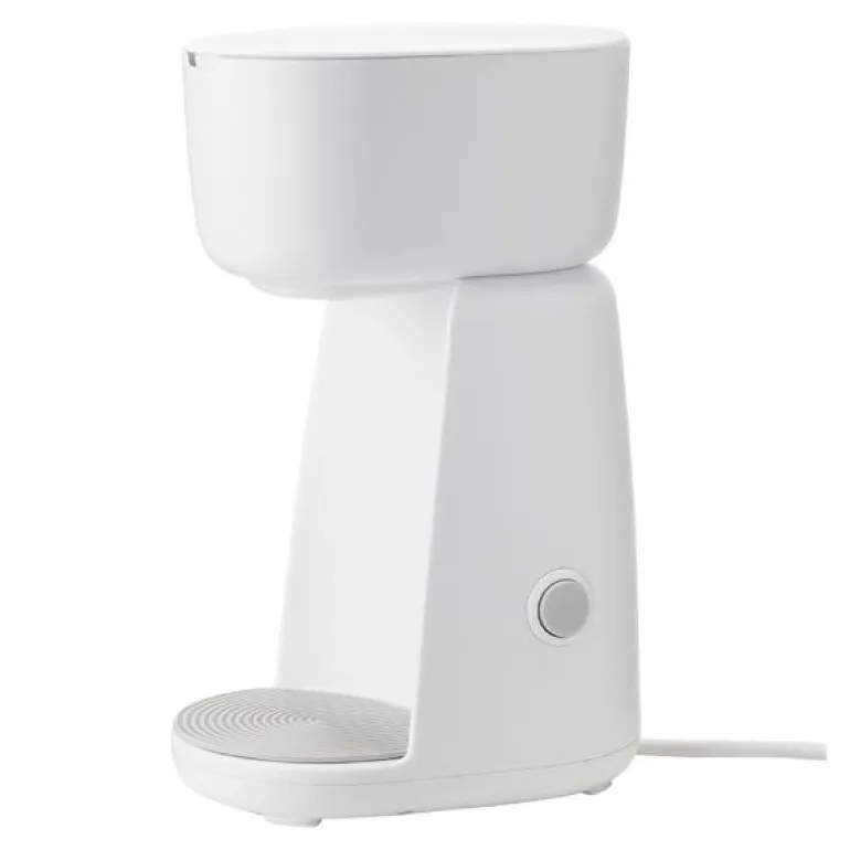Hvit FOODIE single cup kaffemaskin inviterer til daglig bruk med sitt funksjonelle og brukervennlige design. Kaffemaskinen tar minimalt med plass og er perfekt til de som gjerne vil ha en enkel kopp friskbrygget kaffe. Kaffemaskinen kan brygge maks 0,4 liter kaffe under en bryggesyklus, og er derfor perfekt ifølge med feks. Stelton ToGo Click 0,4L termokopp (denne kan kjøpes utenom). Kaffemaskinen er utstyrt med et gjenbrukbart kaffefilter, med hensyn for miljøet. Kaffefilteret kan kjøpes som reservedel, hvis det skulle gå i stykker. Alle el-artiklene i FOODIE-serien kan adskilles, så de rene materialer kan gjenskapes til nye produkter.